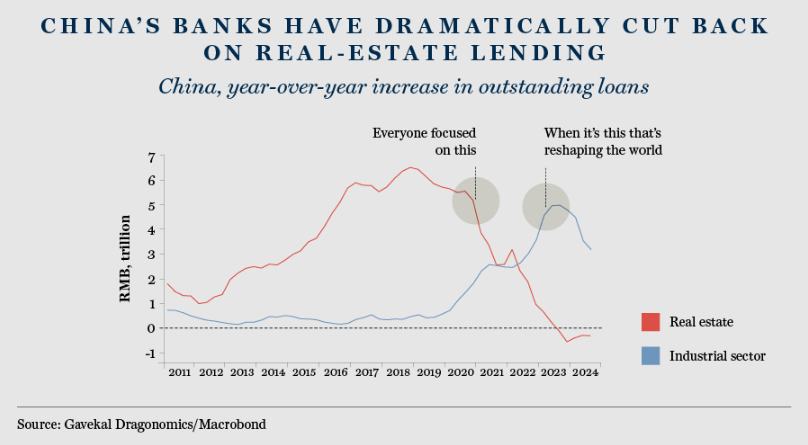And the West has prompted this. The imposition of the semiconductor embargo by the US in 2018 triggered a move to self-sufficiency in every industrial sector. Rather like a French general fighting the Second World War by looking back at the First, the West missed the switch as commentators focused on the problems of the property market. The property-driven growth model was discarded with bank lending directed towards the building of advanced industries.