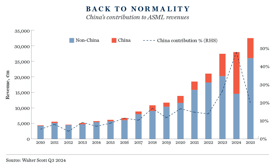 Last month, I was in the Dutch town of Veldhoven to hear the management team at ASML brief investors on the company’s long-term strategy. The update came at an opportune moment. The previous month, ASML’s third-quarter results had triggered volatility across the semiconductor sector, with its own share price falling 16% in the process.
