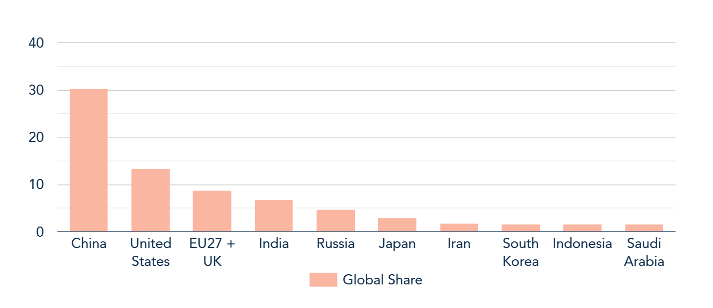Top emitting countries by global share (%)