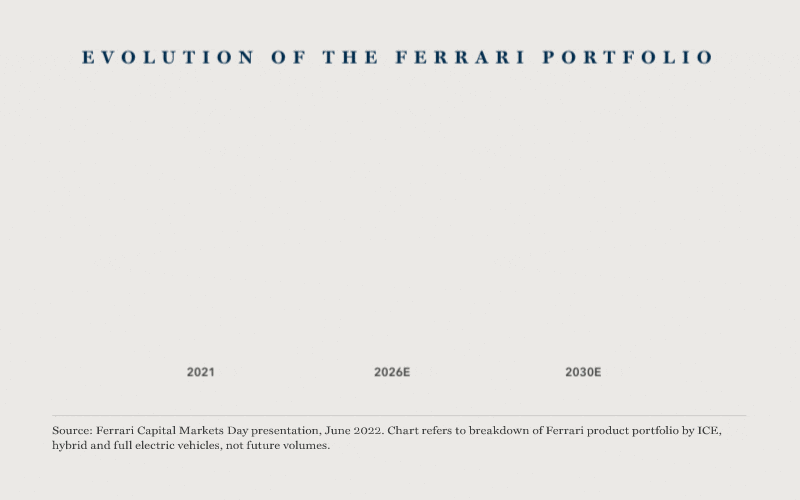 The other major focus of product development is the gradual decarbonisation of the Ferrari fleet. While Ferrari has progressively reduced its emissions in recent years through a variety of innovations, often leveraging the cutting-edge work of its Formula 1 racing team, the biggest step to date was the launch in 2019 of a first plug-in hybrid electric vehicle. A full battery electric vehicle is expected in 2025. Having successfully replicated the Ferrari driving experience with its hybrid model, management is confident of repeating the trick. Nothing is being left to chance. Work is even underway to create a sound signature that, while different to the throaty roar of Ferrari’s legendary internal combustion engine, will nonetheless “stir up feelings and emotions”. Retaining “the soul of the machine” is paramount.