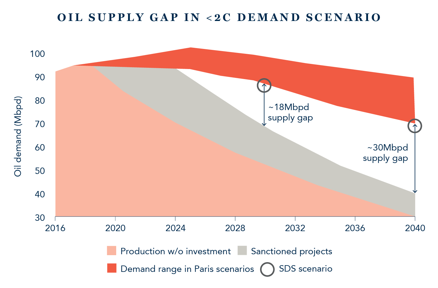 Oil demand will peak in the coming years, if it has not already, but the transition away from oil will be gradual, even in a relatively aggressive scenario consistent with the Paris agreement. New sources of oil supply will still be required to meet global demand.