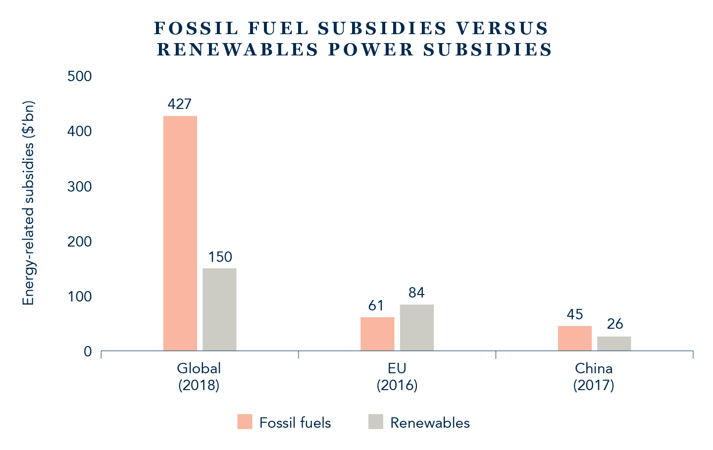 As mentioned above, this argument no longer stacks up. As the chart below illustrates, today, it is fossil fuels which are the main beneficiaries of energy-related subsidies.